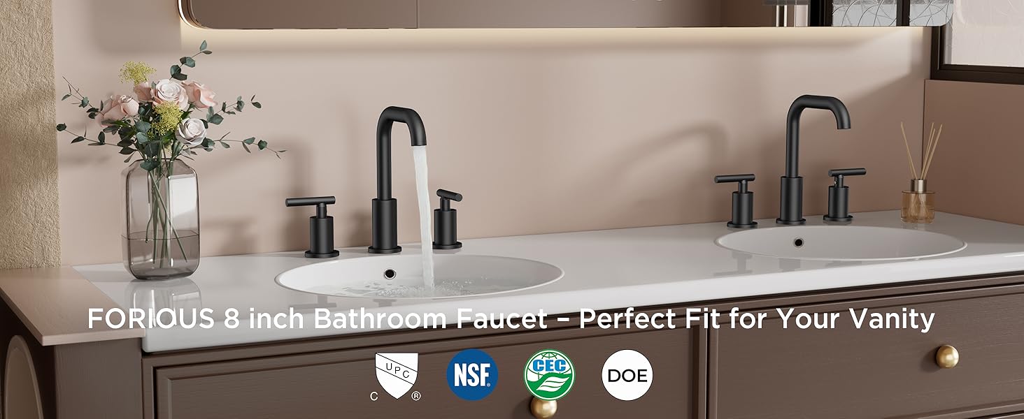 HIGH QUALITY: The bathroom faucets has passed reliable tests and certifications such as cUPC, NSF/ANSI/CAN 61, CEC, DOE, etc. The newly lead-free materials is more heat-resistant and longer-lasting, the FORIOUS faucet just transports healthy and clean water