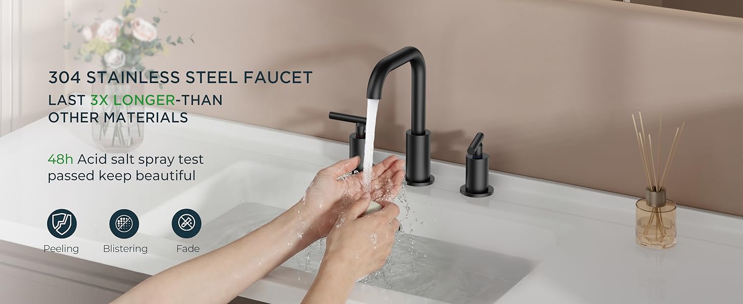 NOBLE SKIN: This black bathroom faucet is finished by elegant matte brings a calming presence to your bath, which pairs elegantly with both traditional and contemporary decor. The surface has passed the 24-hour acid salt spray test, no rust no peeling. It's easy to keep beautiful