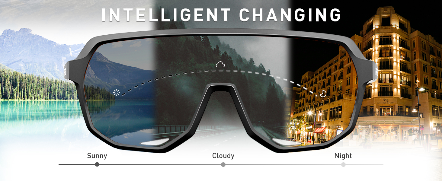 【Photochromic Cycling Glasses】 These cycling glasses feature photochromic technology, where the lenses automatically adjust brightness according to UV intensity, ensuring clear vision in various weather conditions. These cycling sunglasses transition from transparent to dark in sunlight, effectively protecting your eyes with appropriate brightness. When indoors or in low-light environments, the lenses of glasses slowly revert to transparency. The depth of lens tinting depends on UV intensity.