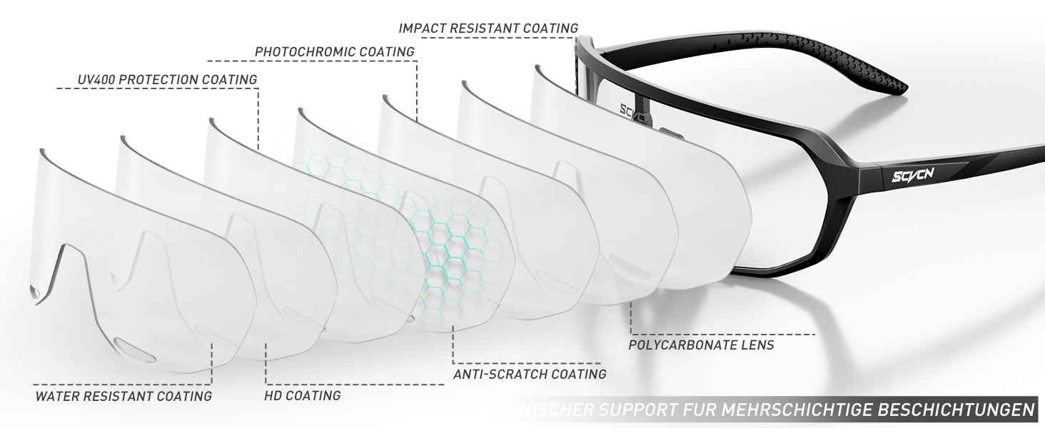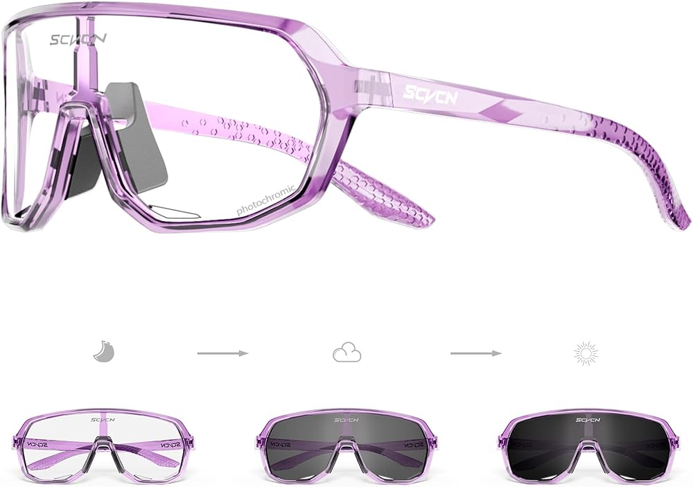 Our photochromic technology is at the heart of our cycling sunglasses, offering unparalleled vision protection. The lenses automatically adjust their tint based on UV intensity, ensuring clear vision in both bright and overcast conditions. In intense sunlight, the lenses darken quickly to prevent glare and shield your eyes from harmful UV rays. Indoors or in low-light conditions, the lenses smoothly transition back to transparency. The unique ventilation hole design prevents lens fogging, ensuring clear vision during intense rides, enabling you to focus on every moment of your journey. SCVCN cycling glasses feature efficient UV400 protection technology, filtering out harmful ultraviolet rays to provide comprehensive eye protection, allowing you to enjoy outdoor sports with peace of mind. SCVCN cycling eyewear is your ultimate choice for exploring new roads and pushing your limits. Let's embrace every adventure together, ensuring clearer vision and a more enjoyable cycling experience.