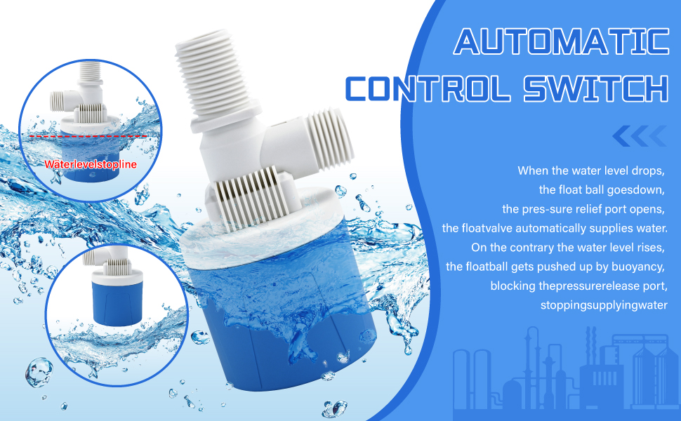 Versatile Applications: The float valve enables precise automatic water level control in tanks, pools, livestock troughs, and industrial cooling systems. Its hands-free operation simplifies irrigation management for gardens and farms, freeing up time for leisure and productivity