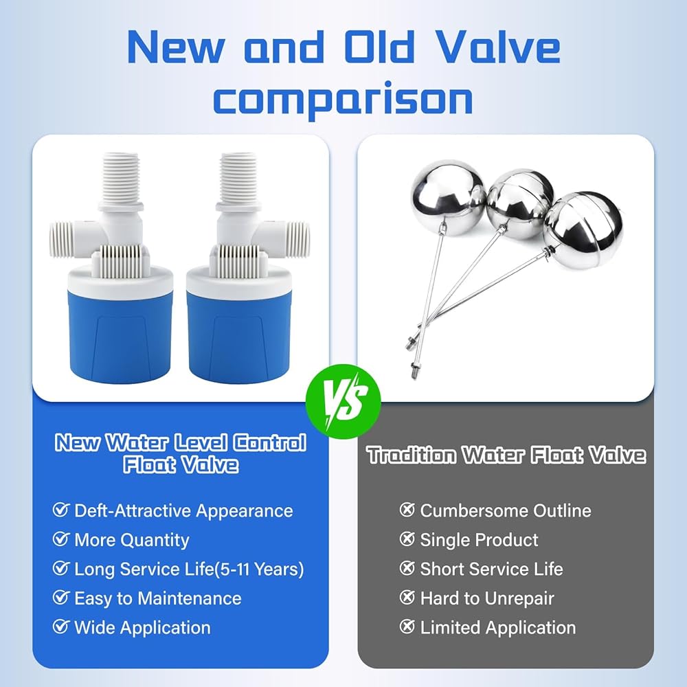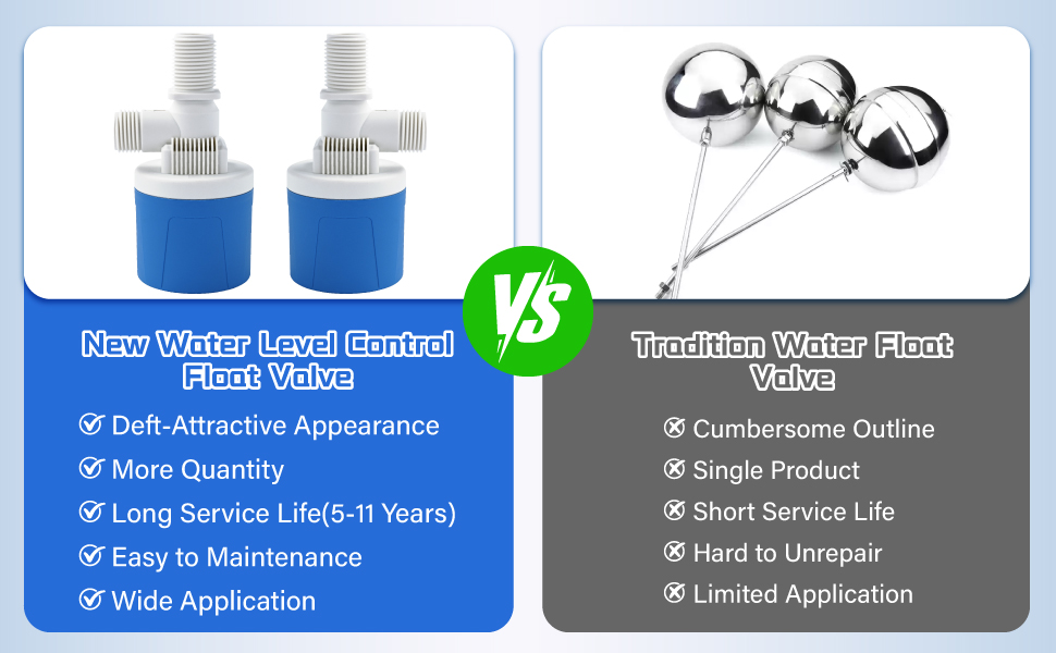 Upgrade Light-Weight Water Float Valve: Compared to traditional valve, our float valve features lighter weight and quicker flow rate,and easier to installation and maintain. The non-electric float valve operates stably at 0.01–1.5 MPa/0–70°C, perfect for agri-irrigation, industrial cooling and so on