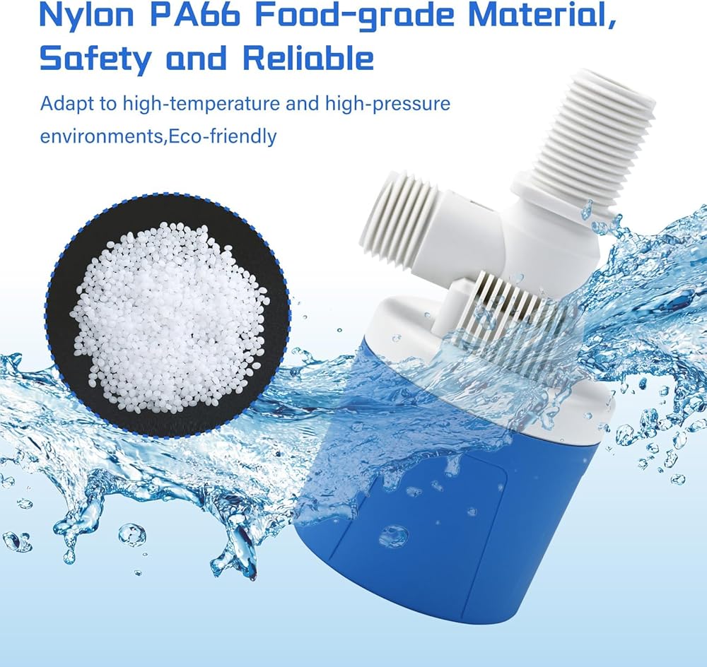 Food-Grade PA66 Material: Crafted from polyethylene that meets food-grade PA66 standards, our float valve will preventing contamination from natural and ensuring daily dietary safety. Additionally, it features long exservice life, with superior resistance to corrosion and rust.