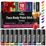 【Oil-based Face Body Paint Kit】Black face paint stick formulated with gentle, water-based, smooth cream blendable paint.Highly pigmented, full coverage, long-lasting, effortlessly washes off with mild soap.Waterproof and good coverage. Eye black softball rotating design, it is soft enough to slide easily, but sturdy enough.