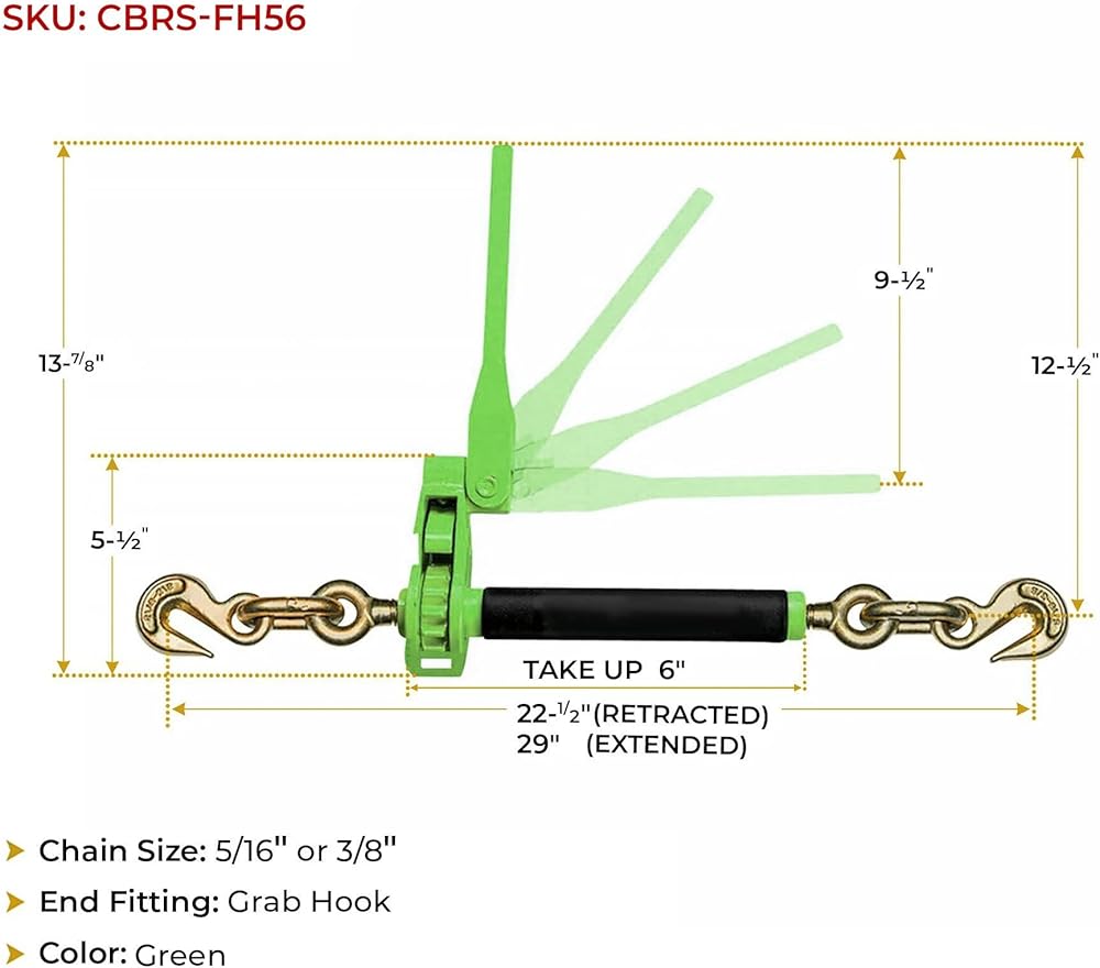 (4 Pcs) 5/16" - 3/8" Hi-Viz Green Quick Ratchet Chain Binder w/ Folding Handle - 7,100 lbs