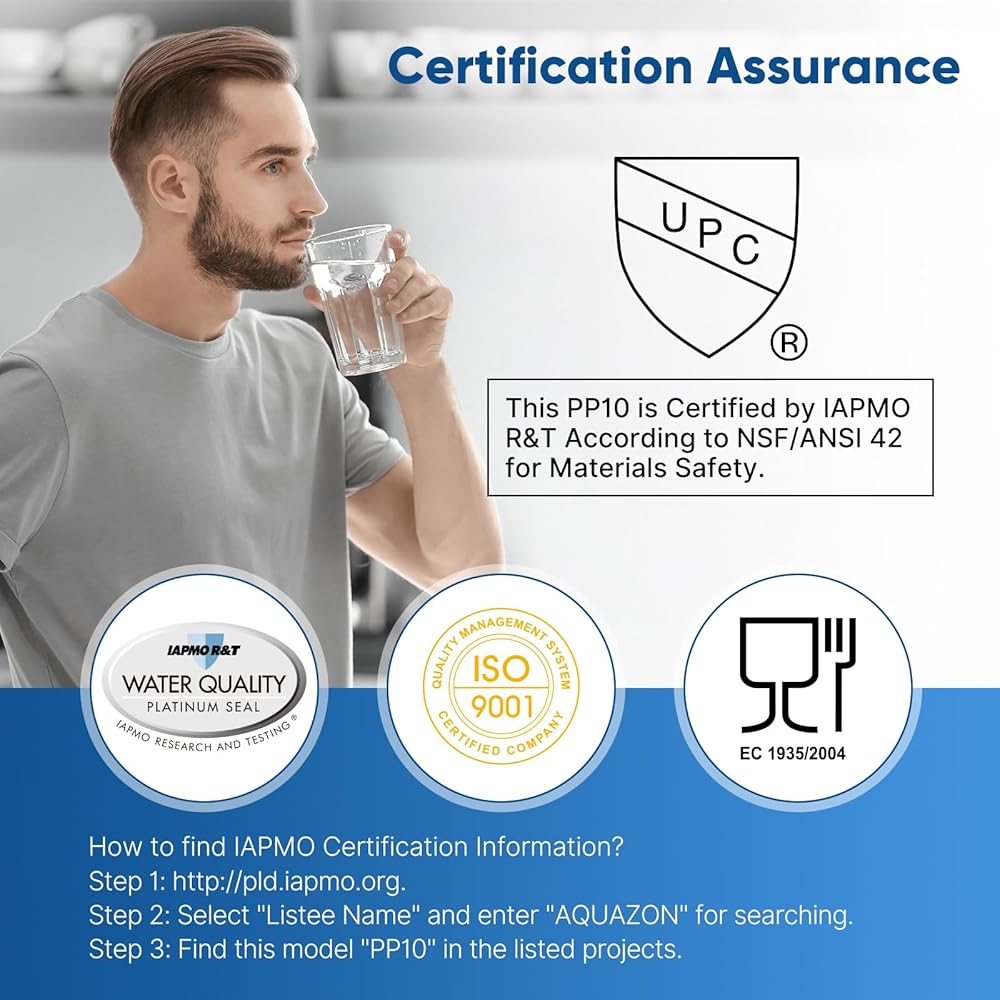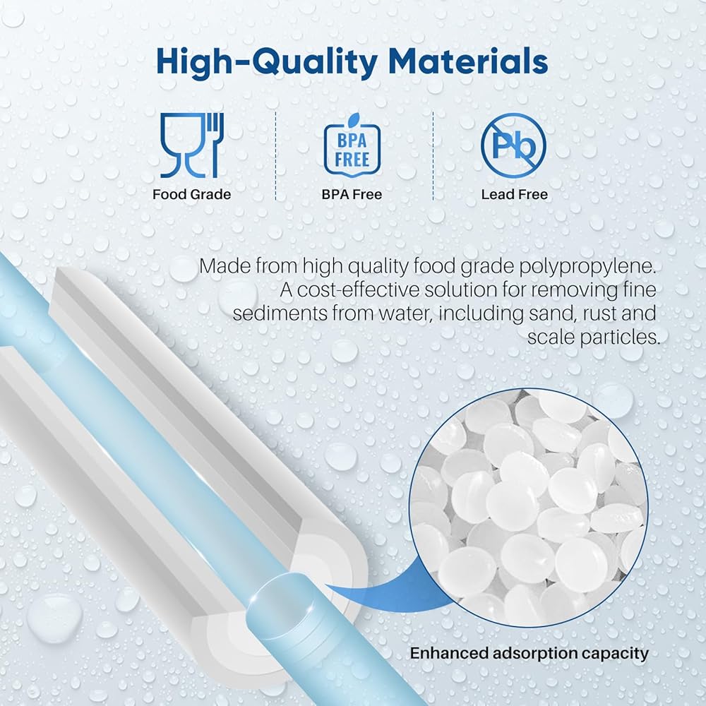 ❄️【Compatible Models】The filter can be used in any standard 10” x2.5” RO Unit whole house filtration system and compatible with standard 10 inch X 2.5 inch filter models of Dupont WFPFC5002, DGD Series, RFC, AP110-NP, AP101S, AP101T,Aqua Pure AP110, AP11S, AP11T, AP12S, AP1610, AP2610, AP51T, SS1-SS12, SS20-SS36, Culligan P5, P5-D, P5A, HF-150, HF-160, HF-360, GE FXHTC, Whirlpool WHKF-DWHV, WHKF-GD05, DuPont WFPFC5002, American Plumber WC34-PR and fits GE reverse osmosis filter systems.