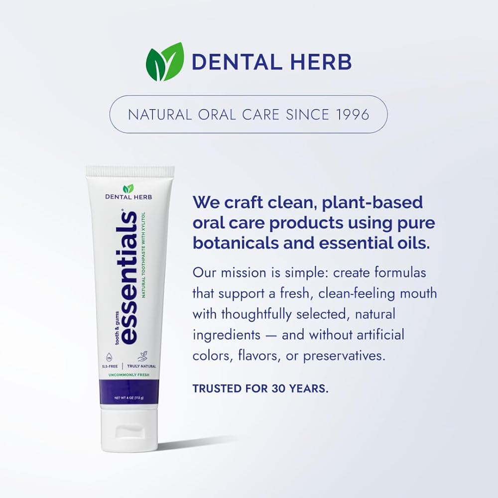 Crafted by Dental Herb Company, established in natural oral care since 1996, Essentials Toothpaste is a fluoride-free, plant-based toothpaste designed for daily oral care. This gentle formula helps clean teeth, freshen breath, and support a clean, healthy-feeling mouth without the use of harsh ingredients. Formulated without SLS and made with thoughtfully selected botanicals, it's ideal for everyday brushing at home or on the go. Because what you put in your mouth matters.