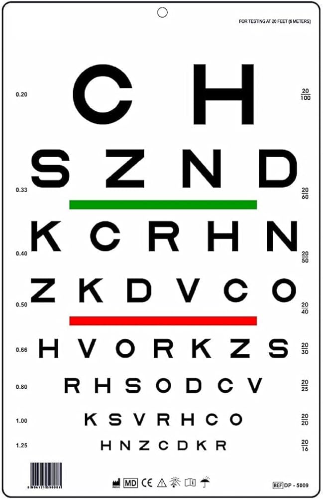 Distance Eye Chart for vision testing at 20 Feet Visual acuity range 20/100 to 20/16