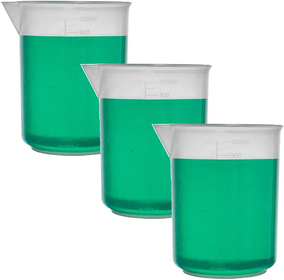 1000ml Plastic Beaker, Low Form, Reusable, Polypropylene, Molded Graduations (Pack of 3)