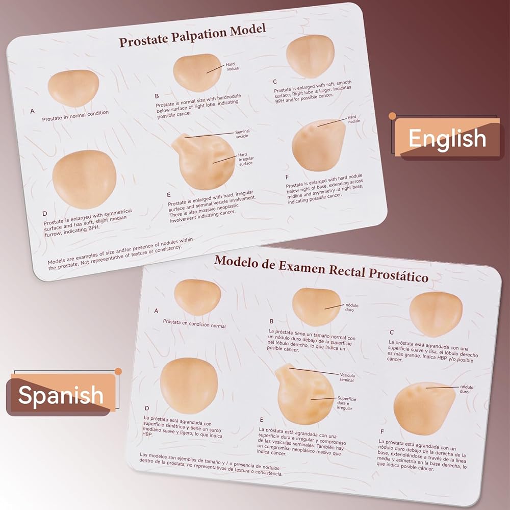 BILINGUAL INSTRUCTION CARDS: Prostate anatomy model includes English and Spanish instruction cards, providing clear explanations for prostate anatomy model teaching, demonstration, educational display, and Male Reproductive System learning