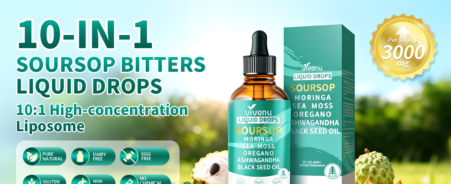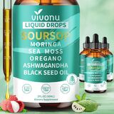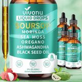 【3000mg Soursop & 10-in-1 Super Herb Blend】Our formula goes beyond a simple mix; it's a scientific fusion of 10 high-potency herbal extracts. Featuring a powerful 3000mg (10:1 concentrate) of soursop drops as the core, it synergizes with Moringa, Sea Moss, Oregano, Ashwagandha, and Black Seed Oil. This creates an all-in-one super supplement, saving you from taking multiple products