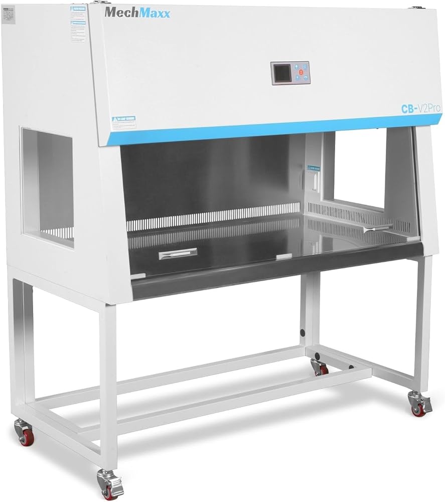 Differential pressure sensor monitors filter efficiency in real time, alerting users when replacement is needed. Work surface constructed from 304-grade stainless steel for durability and easy cleaning.