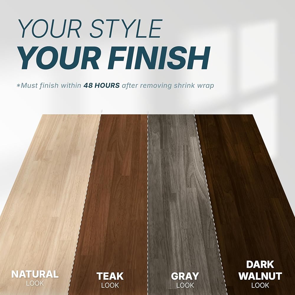 DIY-READY & PRE-SANDED SURFACE. The smooth, raw finish ensures effortless staining, sealing, or oiling, making it ideal for creating customized butcher block desks, tabletop wood slabs, or kitchen countertops.