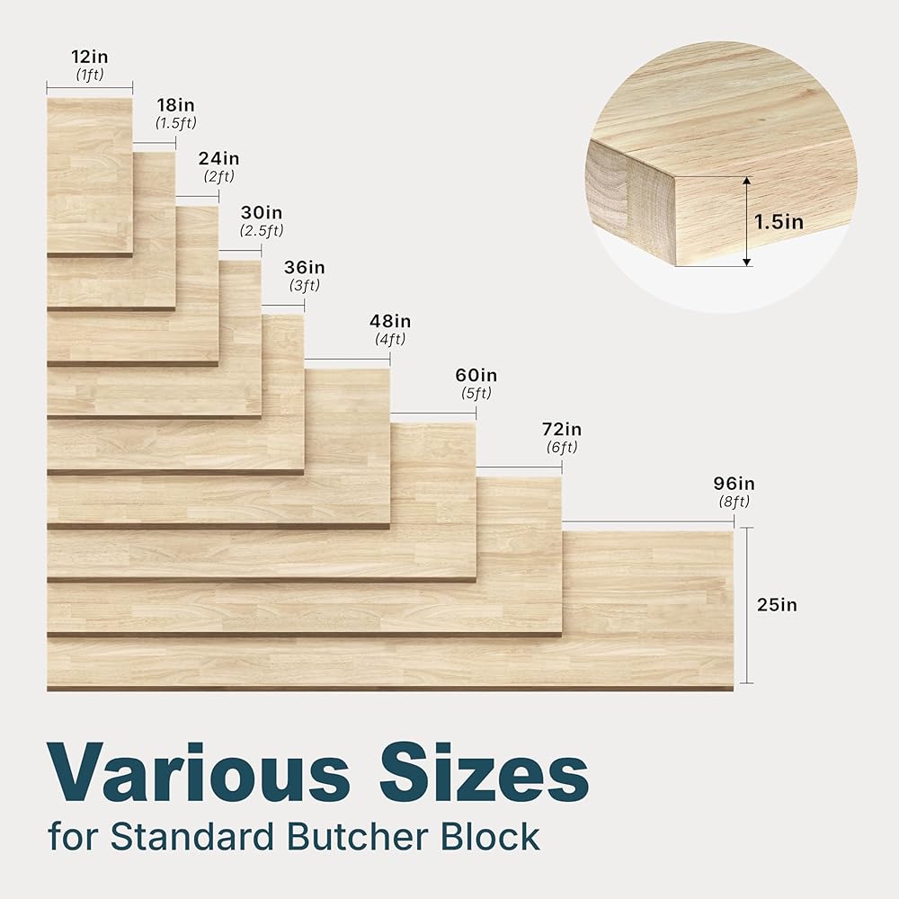PREMIUM HEVEA HARDWOOD. Crafted from durable, renewable Hevea wood, unfinished butcher block countertop is built for strength, style, and versatility. Perfect for kitchen countertop, island, workbench, table top, desktop, washer dryer top.