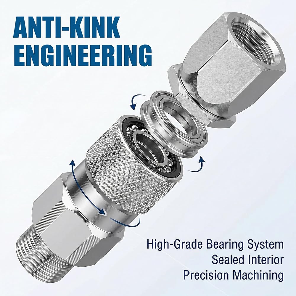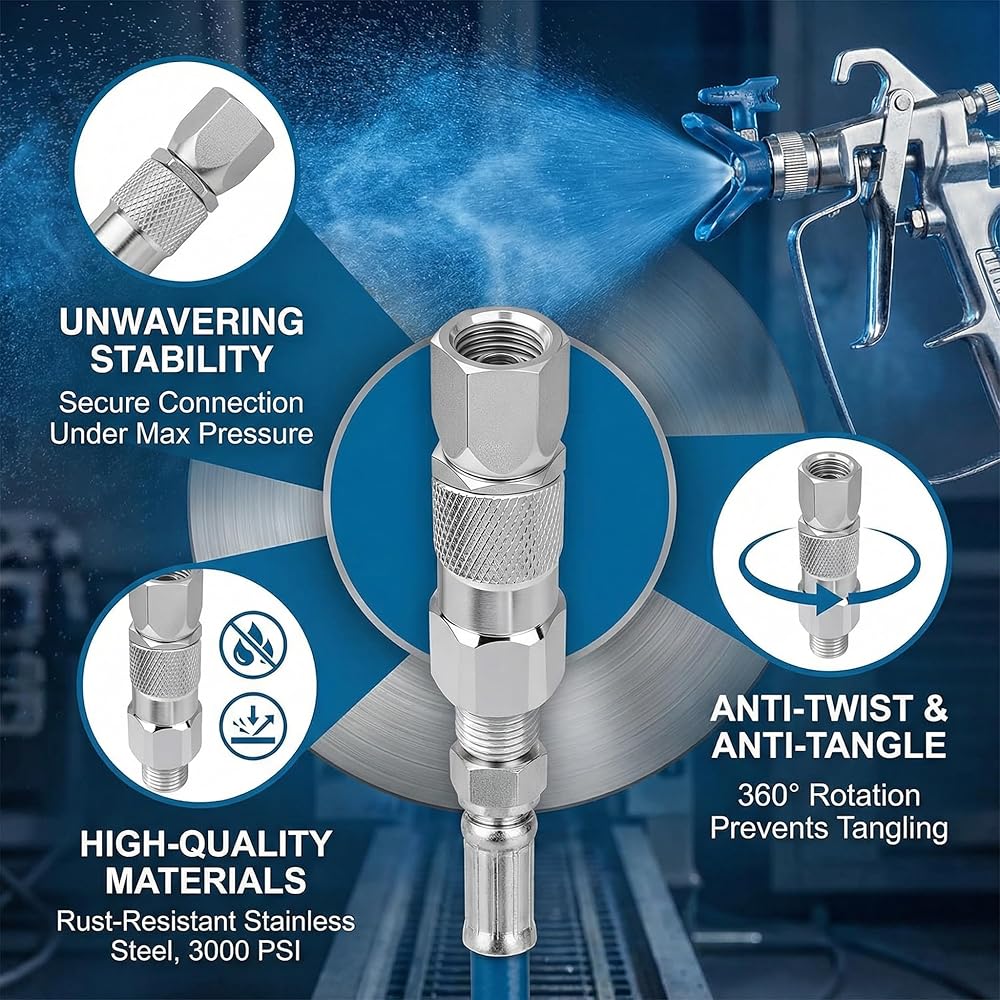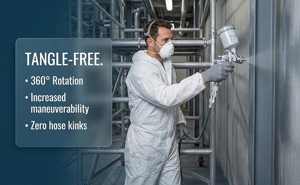 - SWIVEL DESIGN: Features 360-degree rotation capability to prevent hose twisting during pressure rolling and painting tasks