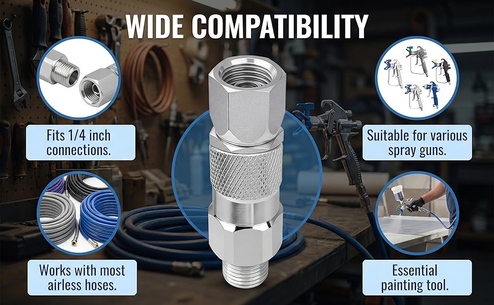 - VERSATILE COMPATIBILITY: Fits 1/4-inch threaded spray guns and airless paint hoses, designed for Graco Magnum paint sprayers