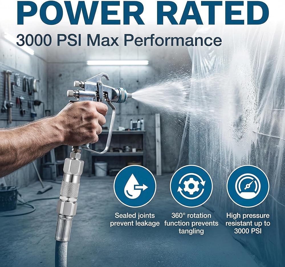 - MAXIMUM PRESSURE: Heavy-duty swivel connector rated for up to 3000 PSI working pressure, perfect for professional paint spraying applications