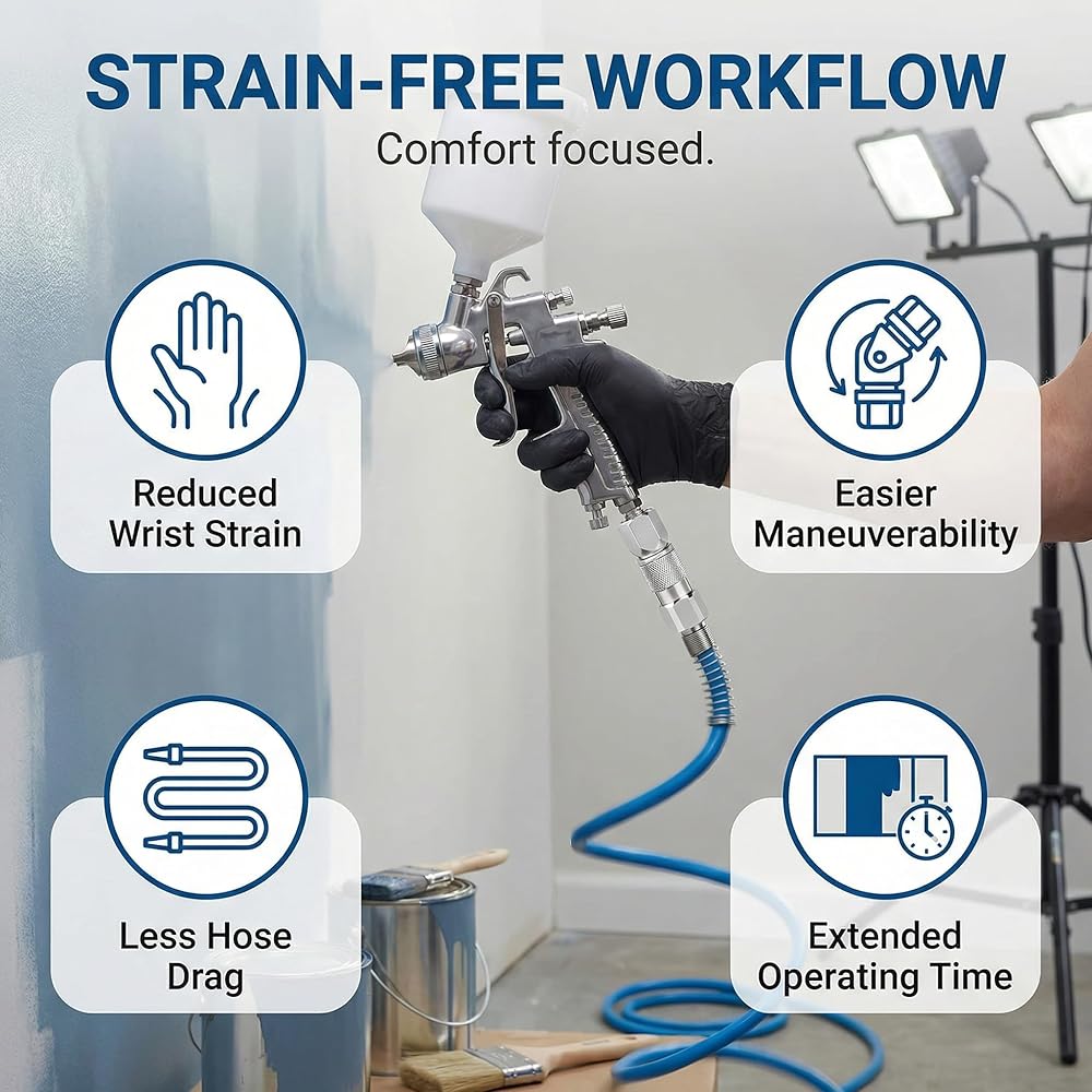 - FUNCTIONALITY: Straight hose connector design optimizes paint flow while reducing strain and fatigue during extended use