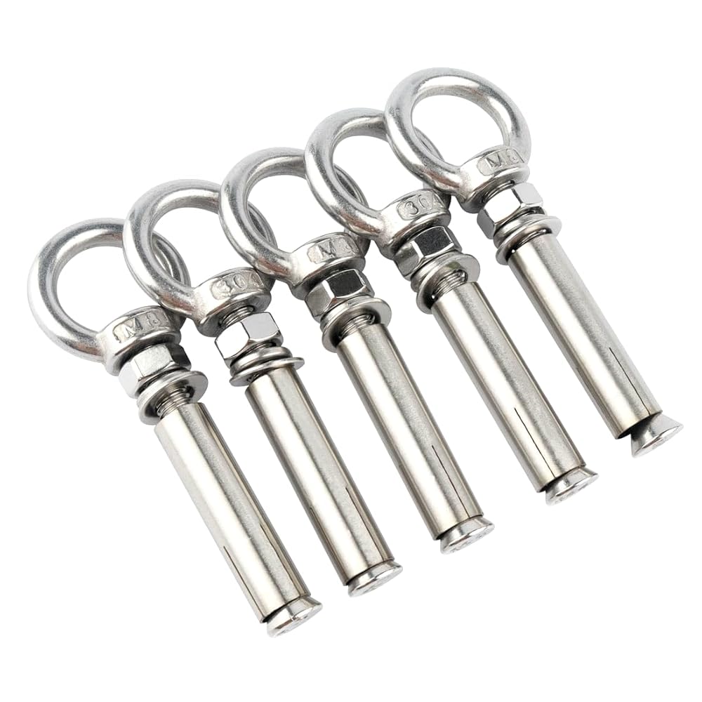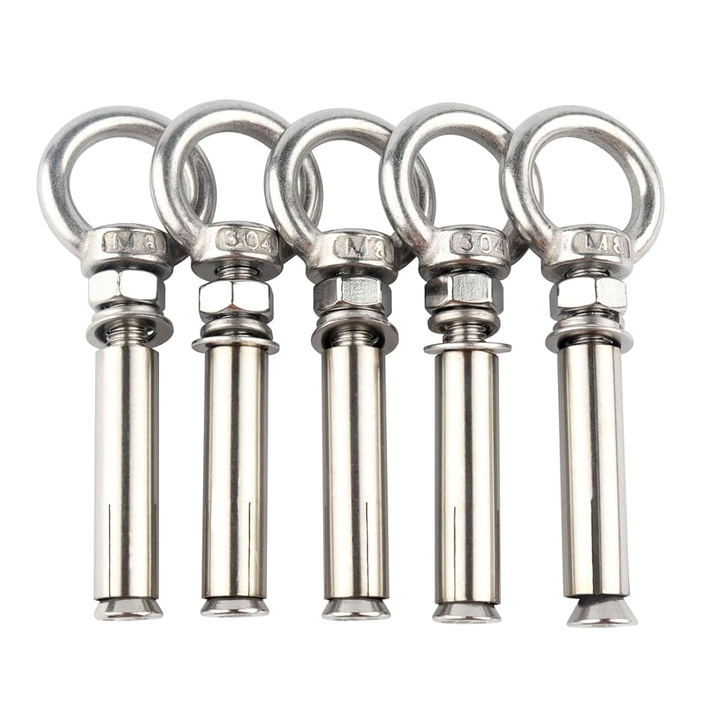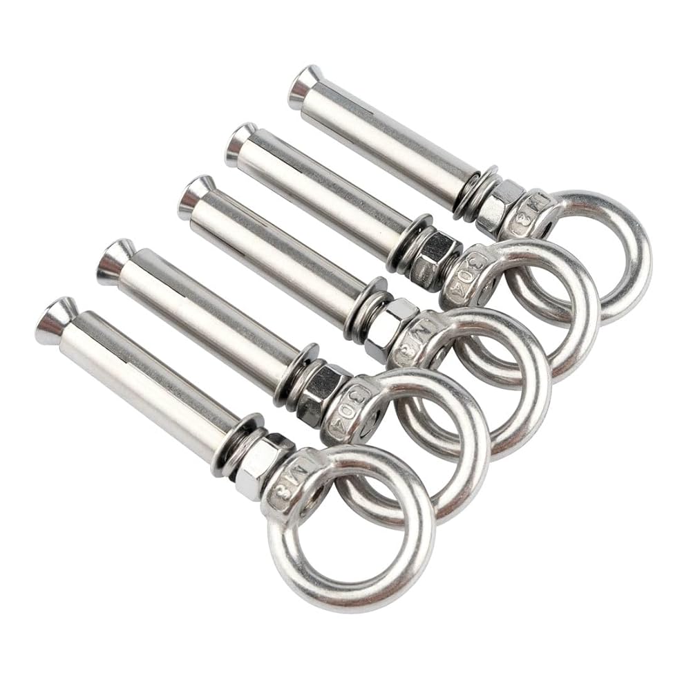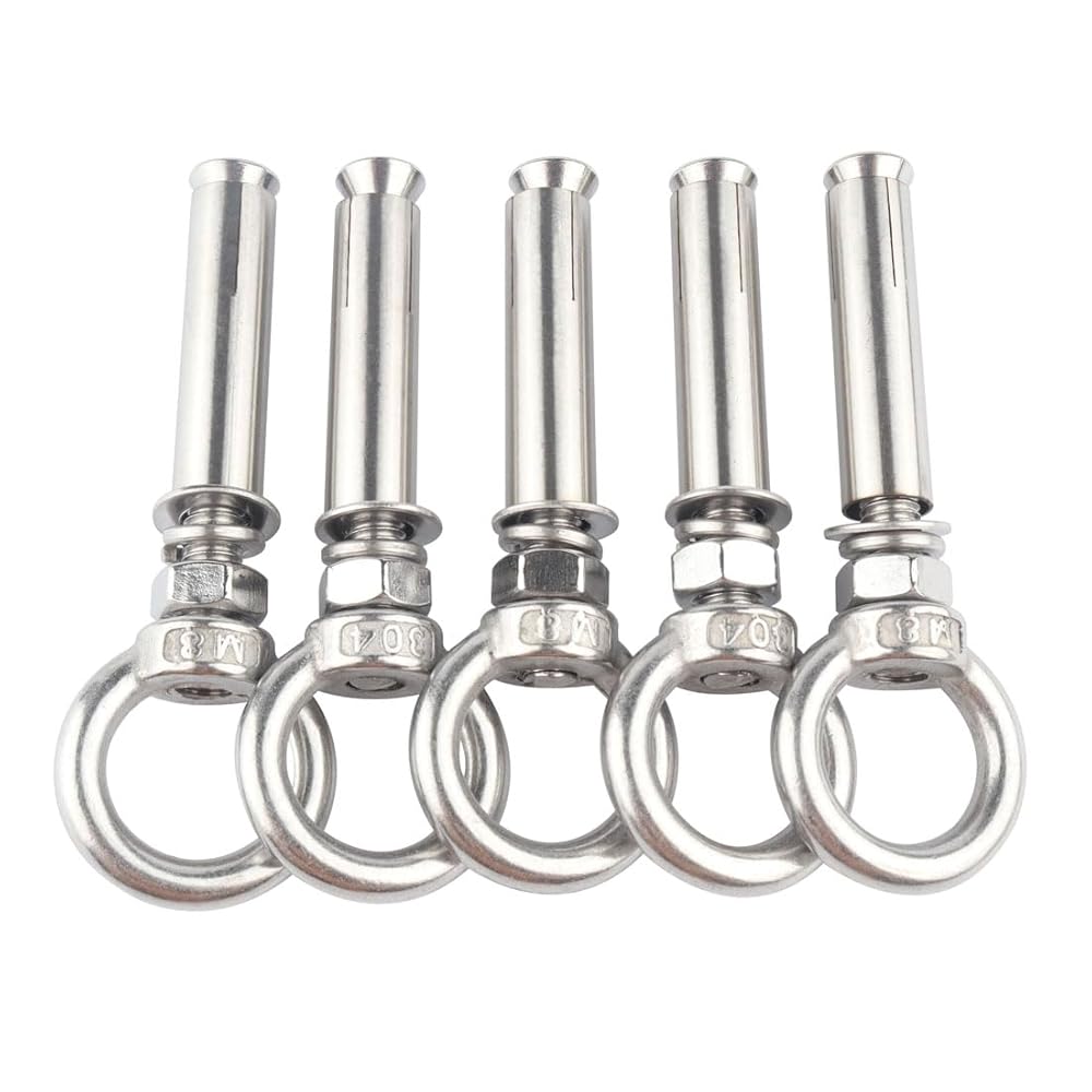 VAMUOEFL Expansion Concrete Wall Anchors Eyebolt Made Of High Quality 304 Stainless Steel; Solid And Durable Structure ; Perfect For Heavy Duty Applications; Concrete Hooks Are Widely Used For Masonry; Anchors And Concrete Surface; Like Sun Shade Sail; Fence; Burglarproof Doors And Window; Clotheslines; Canopy; Air Conditioning Fixation Etc