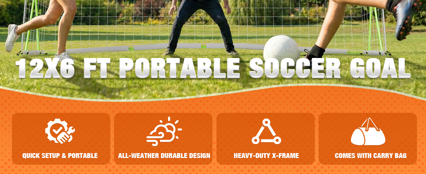 12x6 FT Soccer Goal for Backyard Training, Full-Size Portable Soccer Net with Heavy-Duty X Structure & Carry Bag, All-Weather Outdoor Soccer Goals for Teens and Adults