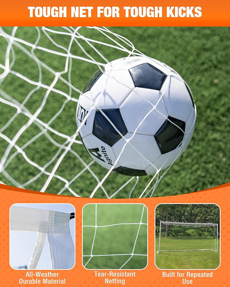 🌧【ALL-WEATHER DURABILITY】: Don't let the weather interrupt your game. Built with a weather-resistant design, this soccer net can withstand sun, rain, and repeated use. The high-quality materials ensure your goal remains in top condition, making it a reliable training partner for year-round outdoor soccer fun.