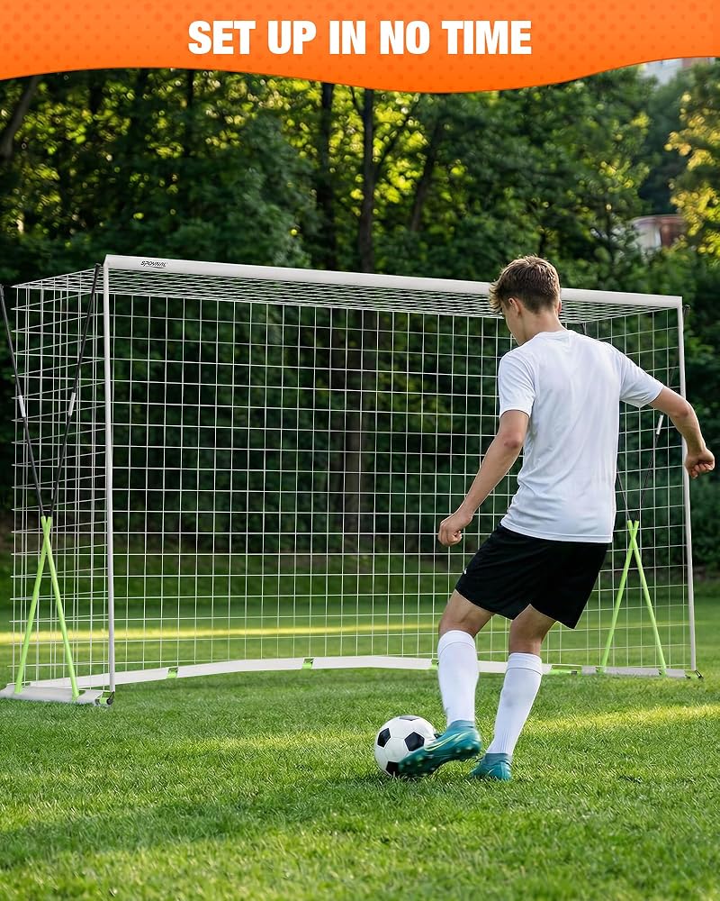 🎯【QUICK SETUP & INSTANT PLAY】: Get from your car to the kick-off in just 30 -40 minutes. Our innovative design allows for incredibly quick setup without any tools. Simply assemble the frame, attach the net, and you're ready for action. It's the perfect solution for spontaneous games and maximizing your practice time.