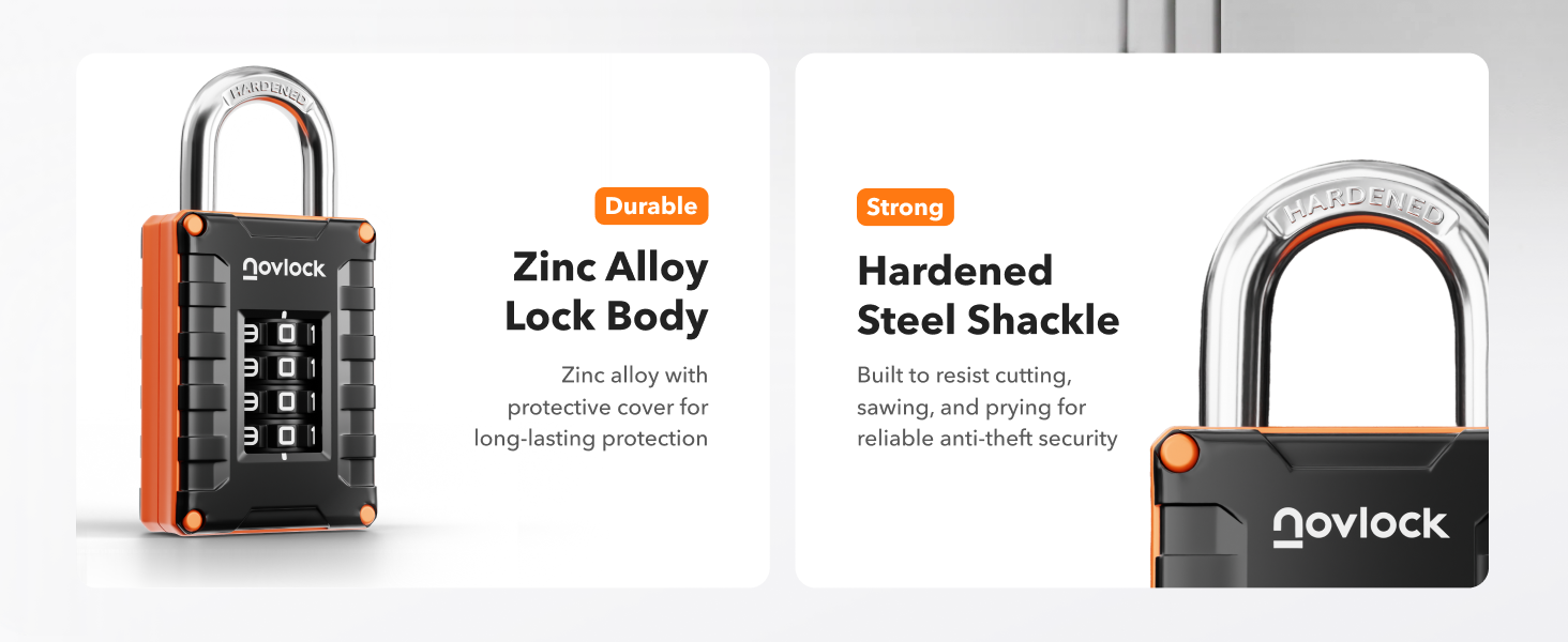【5-Year Warranty】We're so confident in the quality of our durable combination locks that we back them with a 5-year warranty. No questions asked. Reliable security and peace of mind, that's NovLock.