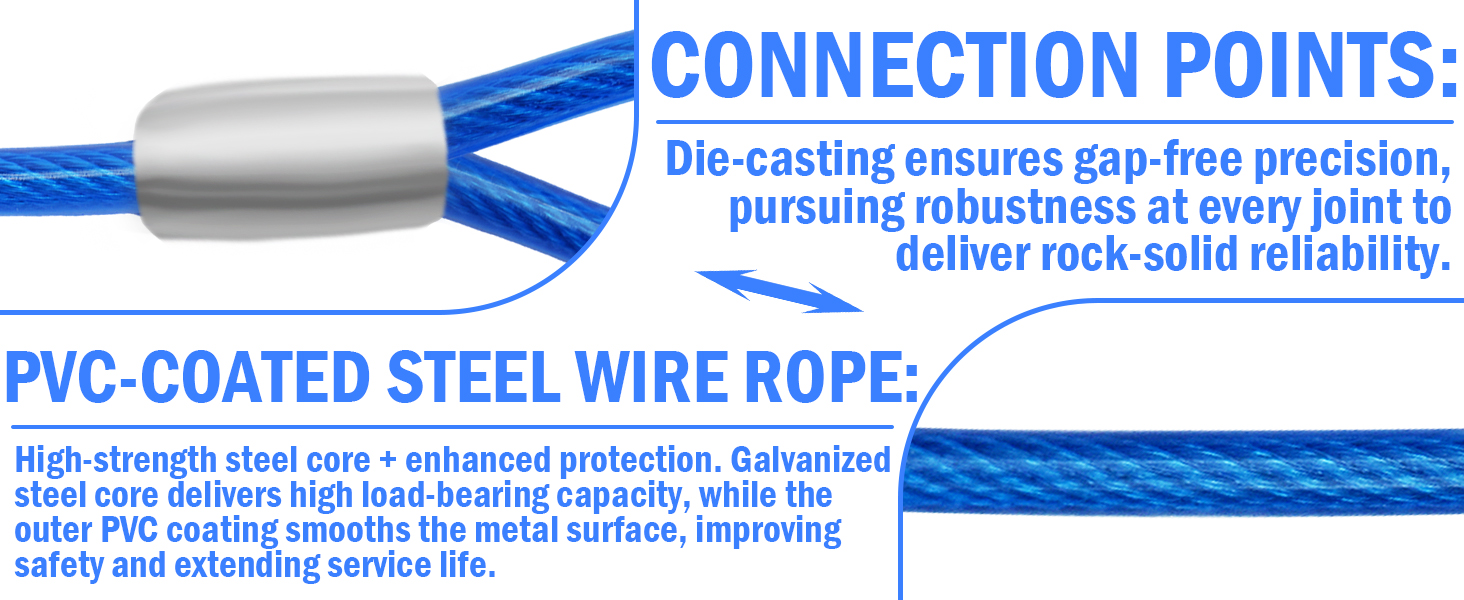EXCEPTIONAL DURABILITY: Galvanized steel braided layer with PVC protective coating effectively prevents scratches and accidental cuts. Combines strength and flexibility to withstand harsh outdoor environments.