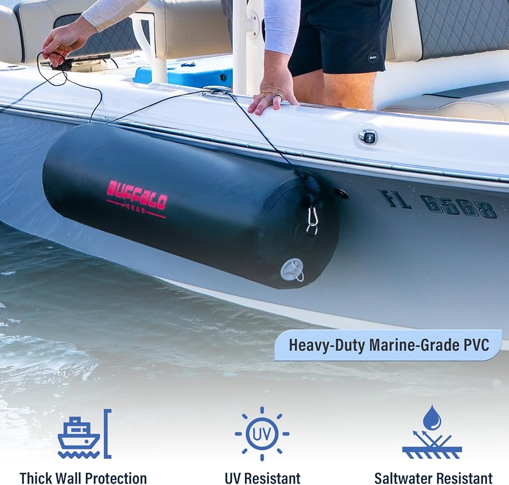 Secure with Included Ropes – 4 durable 6.6ft fender ropes with stainless steel clips ensure quick attachment to rails or cleats, preventing slippage during rough docking or storms