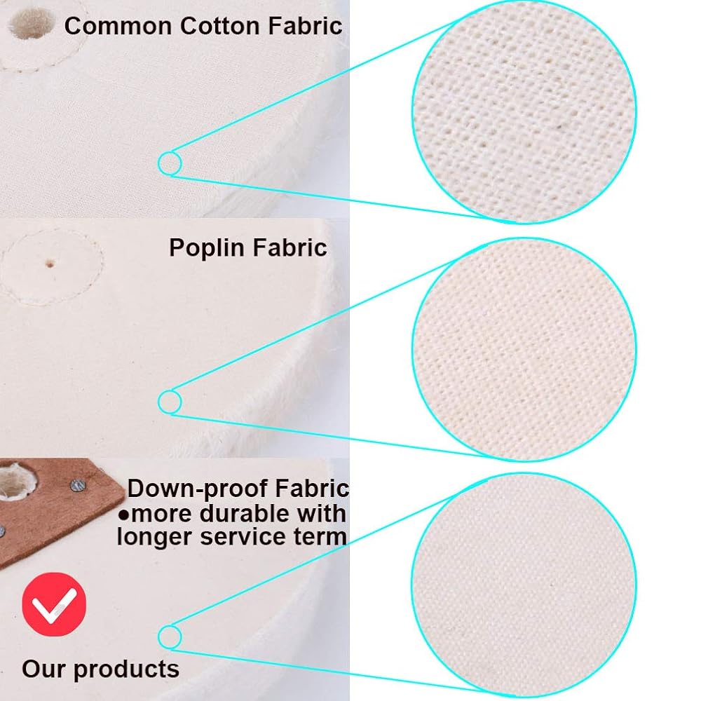 【Professional design】The 90 ply fine wheel is made with High-grade cotton cloth, fabric texture is tight and yarn is durable than others , the 60 ply wheel is made with white fine cotton, the 40ply flannel wheel is soft enough, whole buffing kit can fulfill your variation polishing purpose.