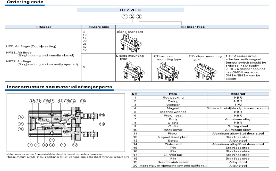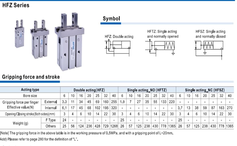 Pneumatic Gripper Claw Parallel Style with Guide Track-Ball Bearing, Mini Finger Air Cylinder AirTac HFZ40 (Bore Size 40mm)Double Acting