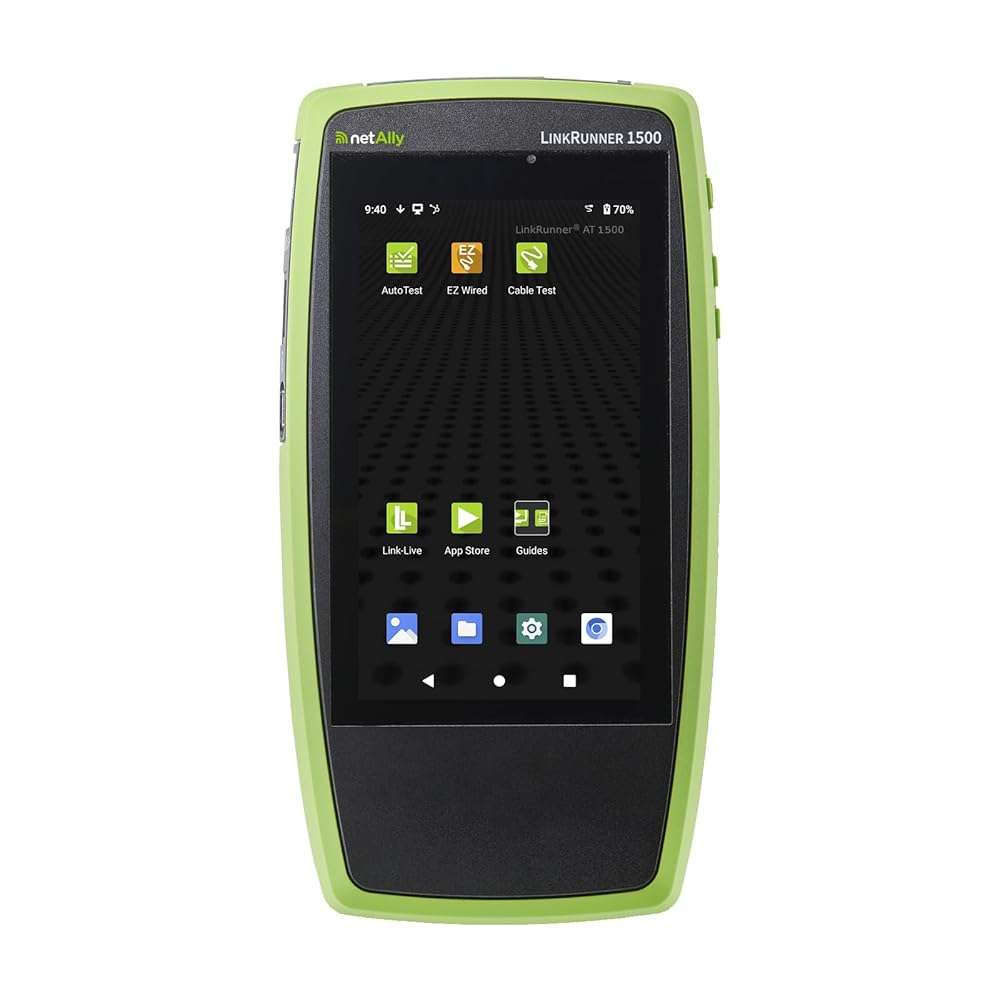 The LinkRunner AT 1500 is designed for frontline technicians who need fast and comprehensive validation of copper network links with powerful network connectivity troubleshooting. While offering the same core functions of its predecessor (LinkRunner AT 1000), the LinkRunner AT 1500 features a large touchscreen and in-depth AutoTest that provides deeper network visibility. With tools designed to help with network changes and troubleshooting, this network tester's quick cable test and switch identification functionality facilitates installation validation and fast problem isolation. Test results can be automatically uploaded to the Link-Live collaboration, reporting, and analysis platform to improve teamwork between network engineers and technicians, creating greater job visibility, better project control, and improved tester fleet management. Independent management plane via wired or Wi-Fi connection (with optional adapter) allows remote operation and result uploading independent of the network under test.