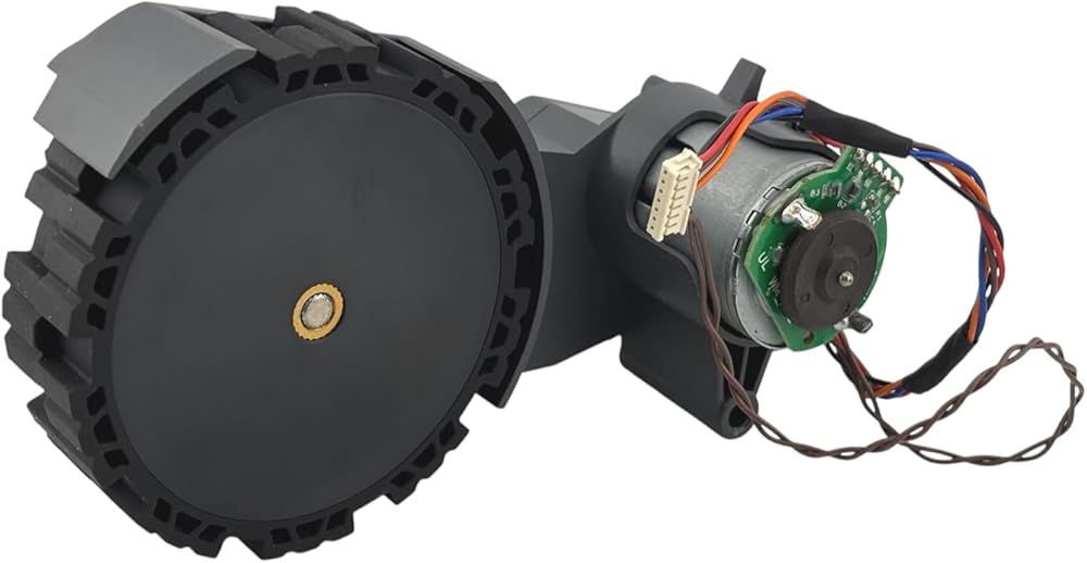 Keep your robot vacuum running smoothly with this high-quality left drive wheel replacement part.The durable construction features a robust black housing with precision-engineered components designed for reliable performance. The wheel assembly comes with the necessary suspension system to help navigate different floor surfaces effectively. The built-in sensor circuit maintains proper functionality with the vacuum's navigation system. Compatible relacement for Roborock Q5 Max+, Q5 Pro+, Q5 DuoRoller+, Q8 Max, Q8 Max+, S8, S8+, S8 MaxV Ultra, S8 Pro Ultra, QRevo Master models, helping restore optimal mobility and cleaning performance.