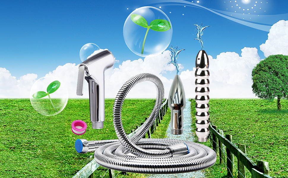 Ideal for Daily Personal Hygiene Perfect for home bathroom use, helping maintain freshness and cleanliness as part of your regular personal care routine. Includes: 1 x Stainless steel hose ,2 x metal nozzles, 1 x Shower Sprayer Bidet ,1 x Waterproof tape,1 x packaging bog