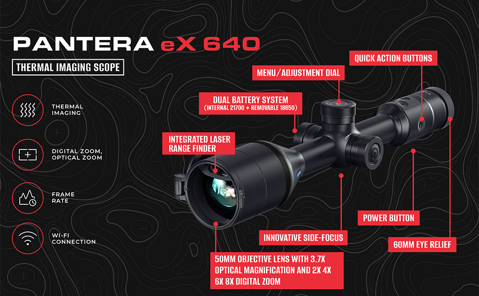 Elite Thermal Sensitivity for Unmatched Target Detection: Equipped with a true 640×512 resolution thermal sensor and an ultra-low ≤14mK NETD, the Pantera eX 640 reveals the faintest heat signatures that other scopes miss. The 50Hz refresh rate delivers smooth, fluid imagery when tracking fast-moving game, while the 50mm lens ensures superior heat detection across varied terrain—from dense timber to open fields.