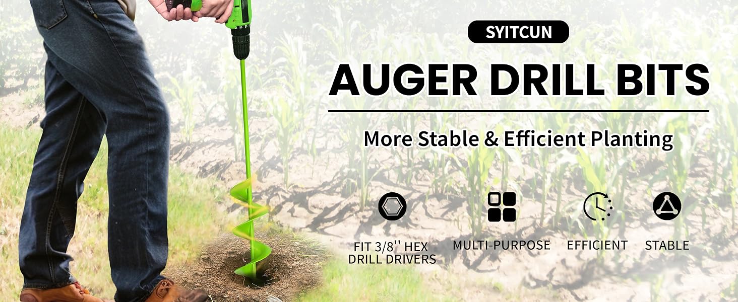 【Multi-Purpose Use】 Ideal for planting bare-root trees, large shrubs, and perennials in gardens or orchards. Also creates clean holes for 4x4 fence posts, mailboxes, deck footings, and anchoring tents, beach umbrellas, or playsets. From landscaping to anchoring – this auger drill bit does it all