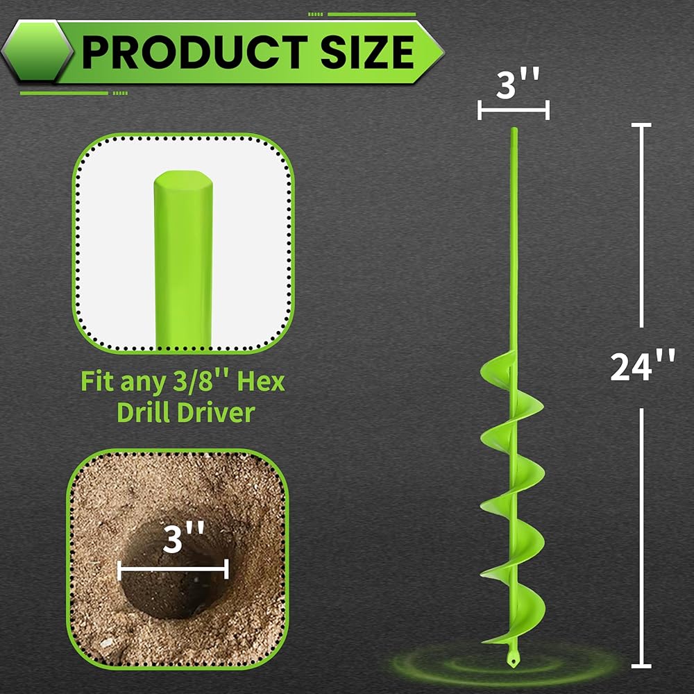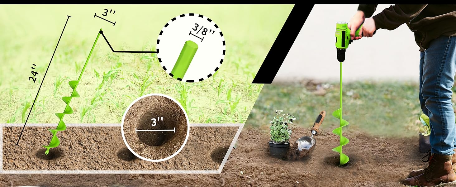 【Adjustable Depth & Diameter】 Drill exactly what you need: from 2" shallow holes for seedlings to full 24" depth for deep roots. The 3" min diameter fits most jobs, but need wider? Drill multiple passes around the same center to expand up to 6"+ for larger plants or posts. One auger, endless possibilities