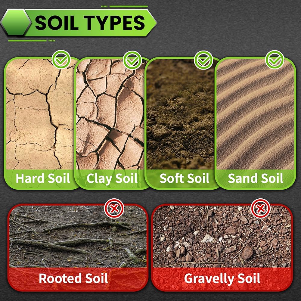 【Handles Hard Clay & Compacted Soil】 Aggressive spiral tip powers through hard clay, dense soil, and light gravel. NOT designed for solid rock or heavy rock fields. For typical garden and fence post jobs, it excels