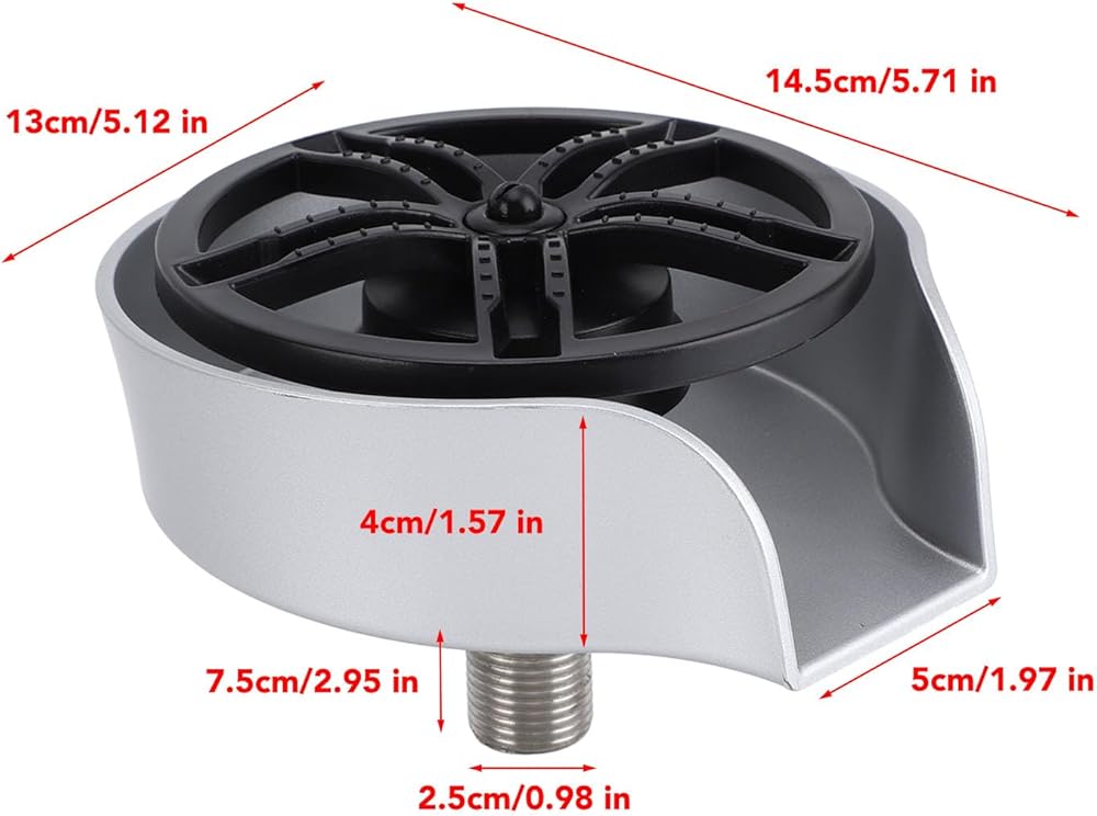 Automatic Rotation: The glass rinser features a 360° automatic rotating nozzle design, combined with high-intensity water pressure spraying, which can quickly clean the dirty on the cup walls and bottom, reduce manual effort and effectively save water