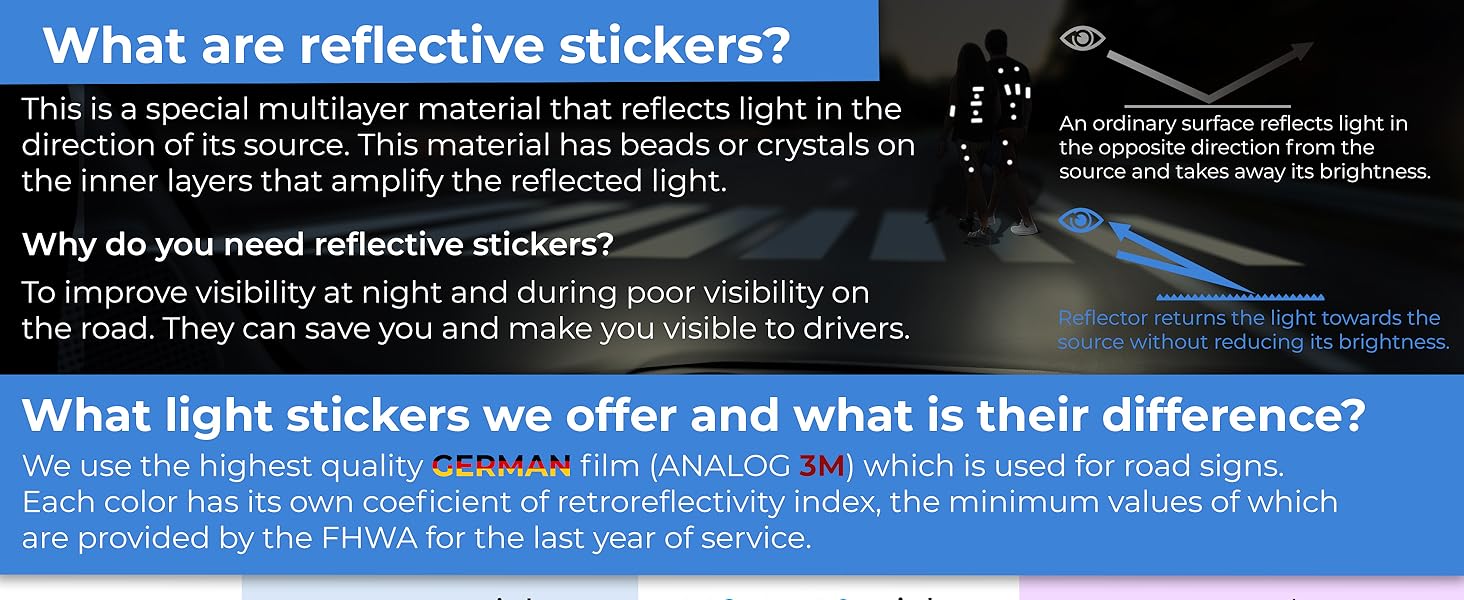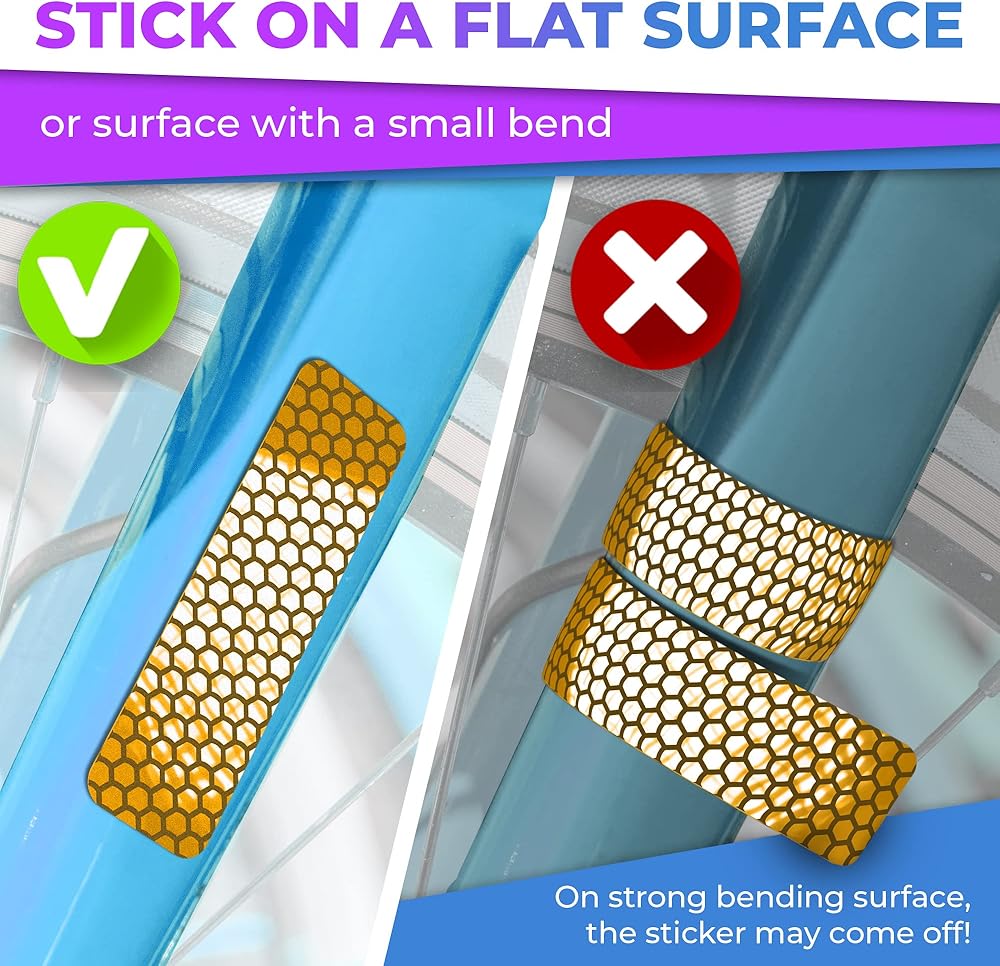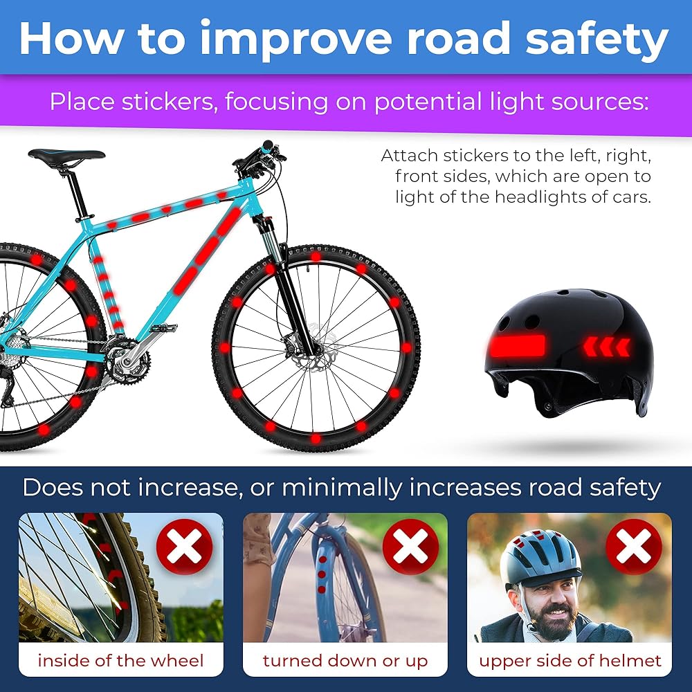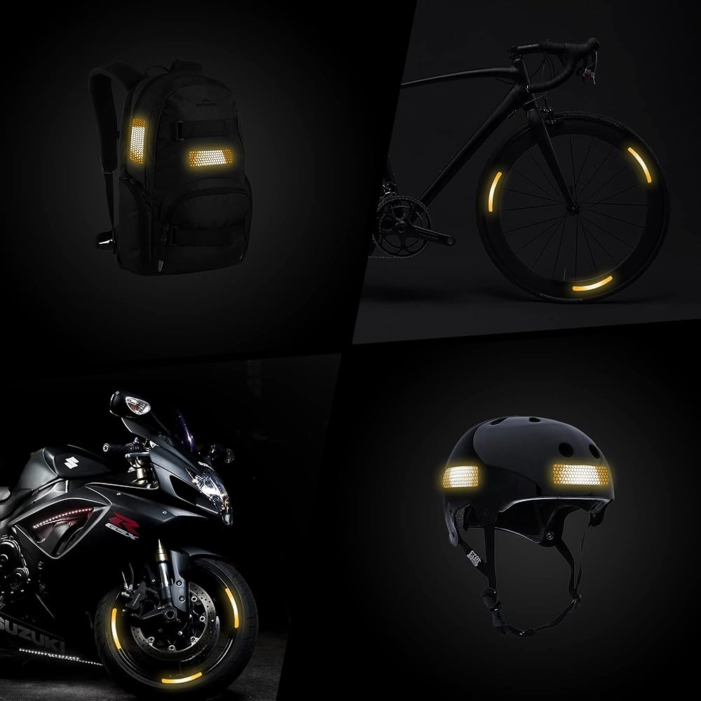 ✔ Versatile Reflective Stickers : From reflective stickers for helmets and decals for motorcycle helmets to bike stickers for frame, We have the largest collection of bike reflectors. Enhance your safety tape with bicycle rim stickers or bike decals, or use them as reflective backpack additions.