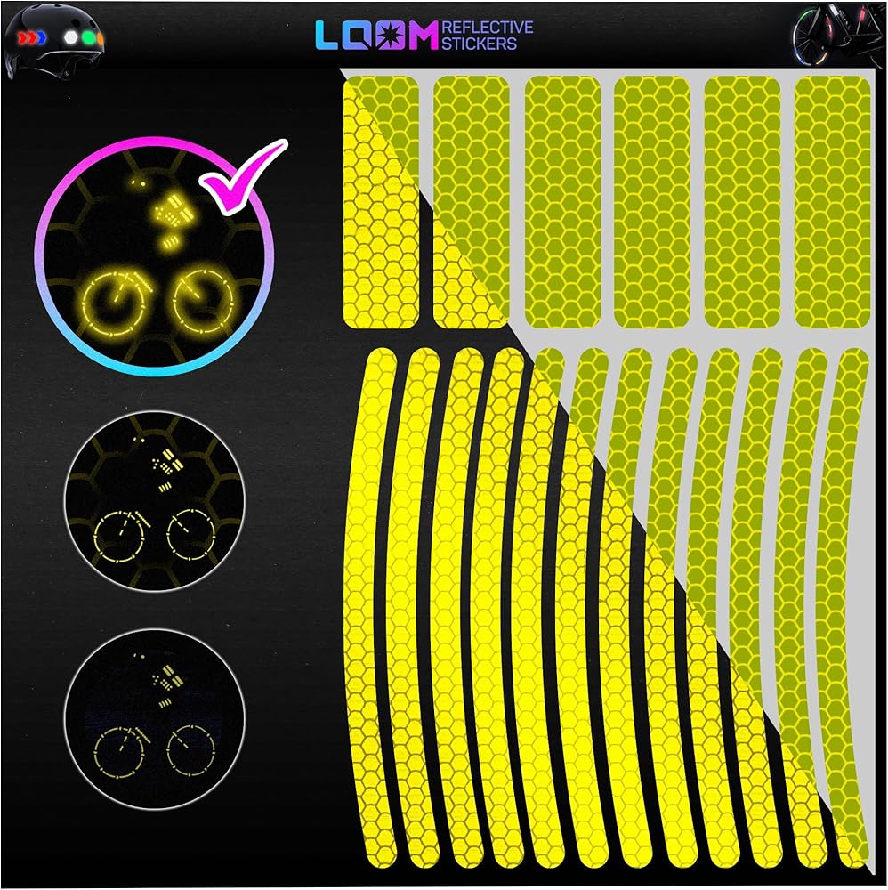 LOOM Reflective Stickers for Bikes Rims | 18pc Brilliant-flurYelGreen | Reflective Tape for Motorcycle Helmet Decals and Bike Reflectors | Hi Vis Bicycle reflectors, Mailbox Stickers