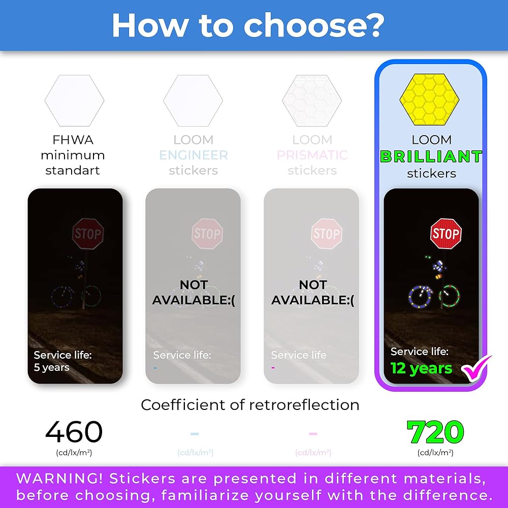 ✔ Specialized Stickers :They can be used to reflective hard hat stickers, fire helmet reflective stickers. Perfect for reflectors for driveway entrance, stroller reflectors for walking at night, wheelchair reflector. Be visible, be safe with LOOM