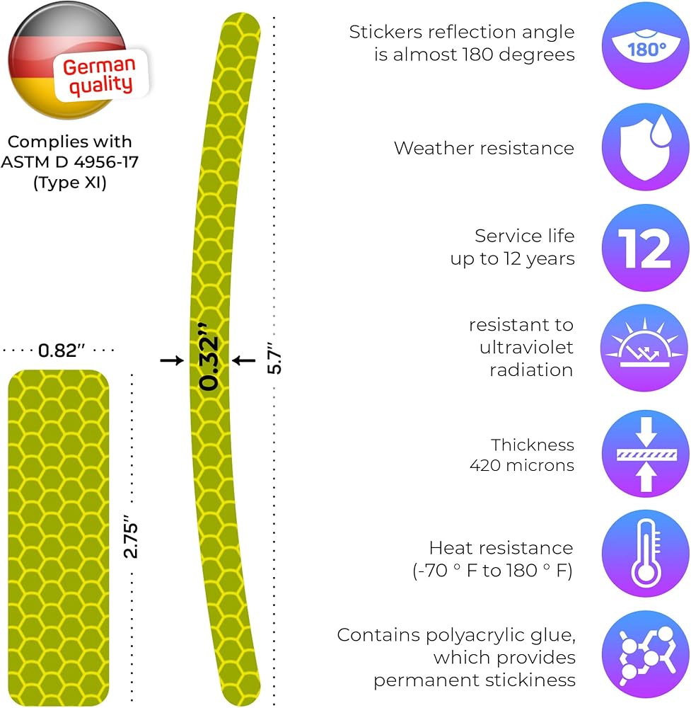 ✔ Durable Reflective Tape for High Visibility – Made with brilliant premium German film, this reflector tape ensures maximum hi vis for bike reflectors for night riding, helmets, and safety gear. Ideal for including hard hat reflective stickers and motorcycle helmet decals.