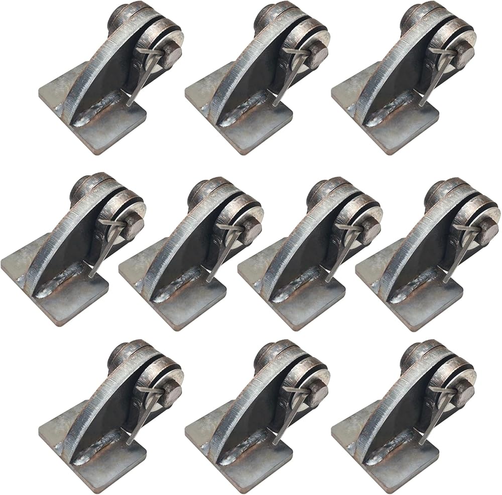 PRODUCT SPECIFICATIONS: Package includes 10 pieces of weldable heavy-duty hinges, each measuring 2.2" x 1.6". The main arm boasts a robust thickness of 3/8 inch (10mm), while the 5/8 inch pin for enhanced load-bearing. Crafted from high-carbon steel, the hinges deliver exceptional structural rigidity for heavy-use scenarios.