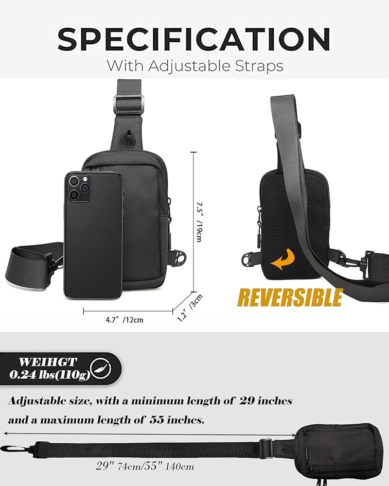 Sleek & Secure Fit: This compact Sling bag 4.7"L x 7.5"H x 1.2"W) hugs your body without bulk. The adjustable wide strap and breathable mesh back keep you comfortable all day.