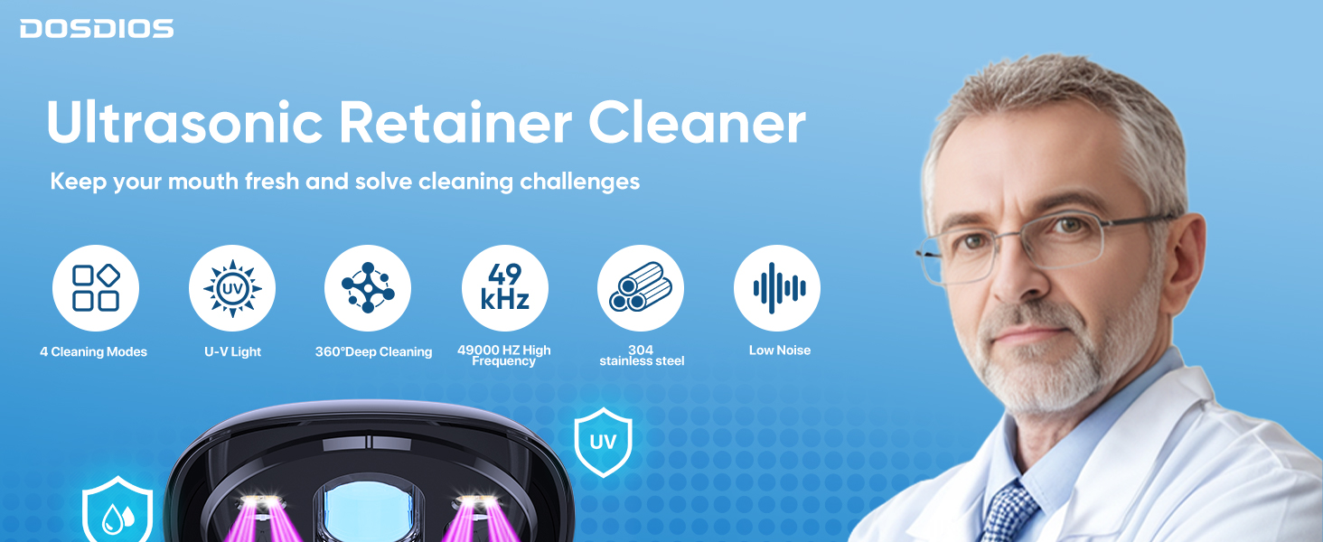 [ONE-CLICK START & 4 CLEANING MODES]:This versatile retainer cleaner features 4 easy-to-use cleaning modes to meet all your daily needs: a 5-Min Quick Clean (Ultrasonic + UV), a 10-Min Deep Clean (Ultrasonic + UV), a 10-Min Ultrasonic-Only mode, and a 10-Min UV-Only mode. Whether you use it for retainers, dentures, or other dental appliances, these flexible settings ensure thorough maintenance and a simplified daily routine.