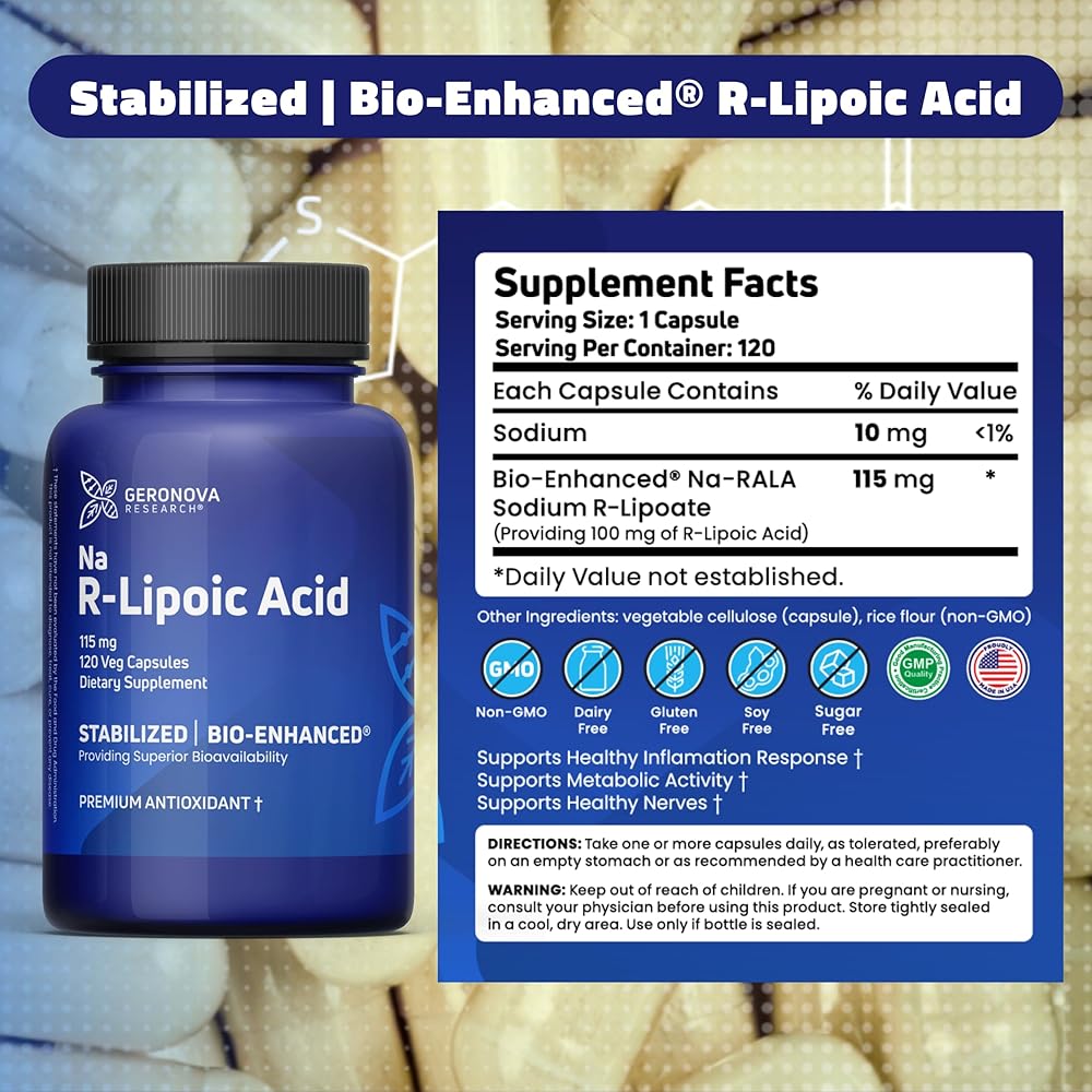 ENHANCED ABSORPTION - GeroNova Bio-Enhanced R-Lipoic Acid is the most absorbable form of Lipoic Acid as it's the exact type the body requires, making it 40x more bioavailable and more potent than typical Lipoic Acid.