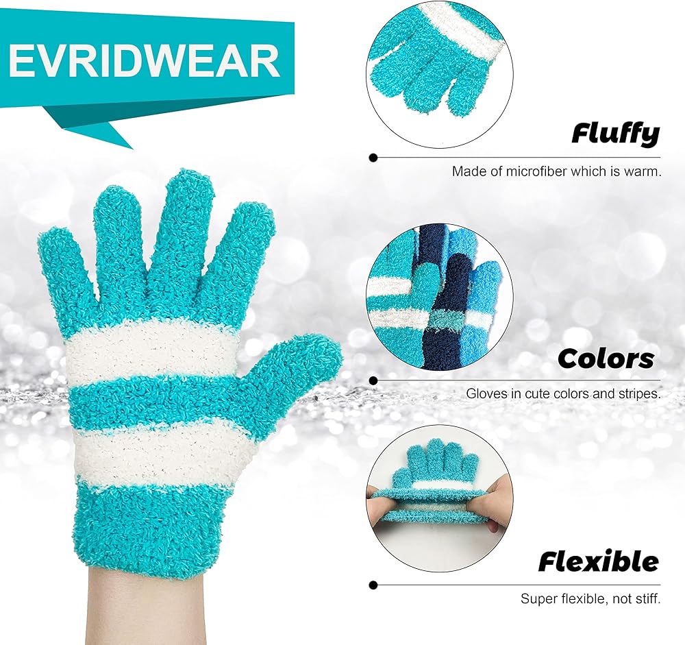 Soft & Comfortable: Evridwear kids gloves are made of microfiber which is warm and fluffy, and fully covers kids' hands. It's soft and comfortable for kids' delicate skin. The microfibers are specially knitted, won't shed or come off. Fingers can still grab and hold items flexibly, not stiff when wearing it.