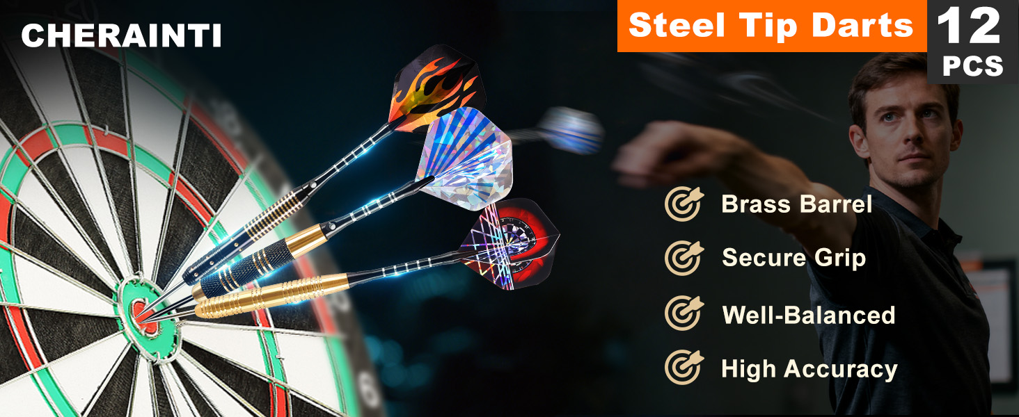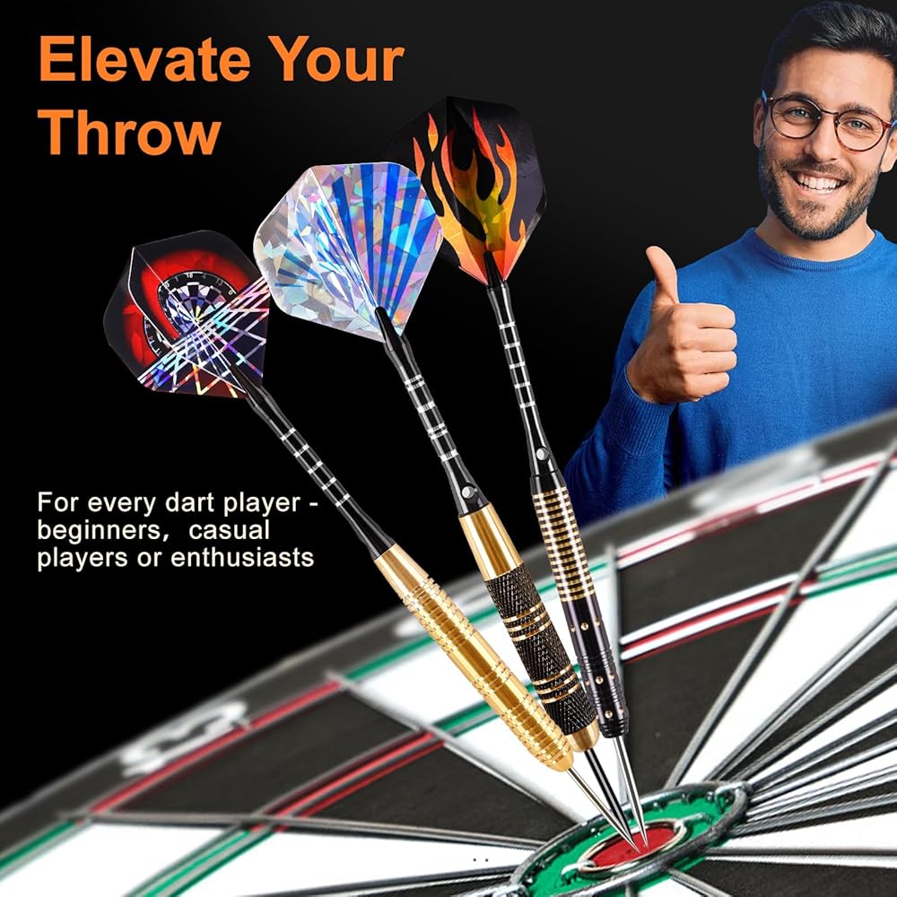 Excellent Balance & Accurate: These steel tip darts feature precision-machined brass barrels with rifled and knurled grips, offering comfortable grip, superior control and balance for straight flight, precise throws, clean sticking, and improved accuracy