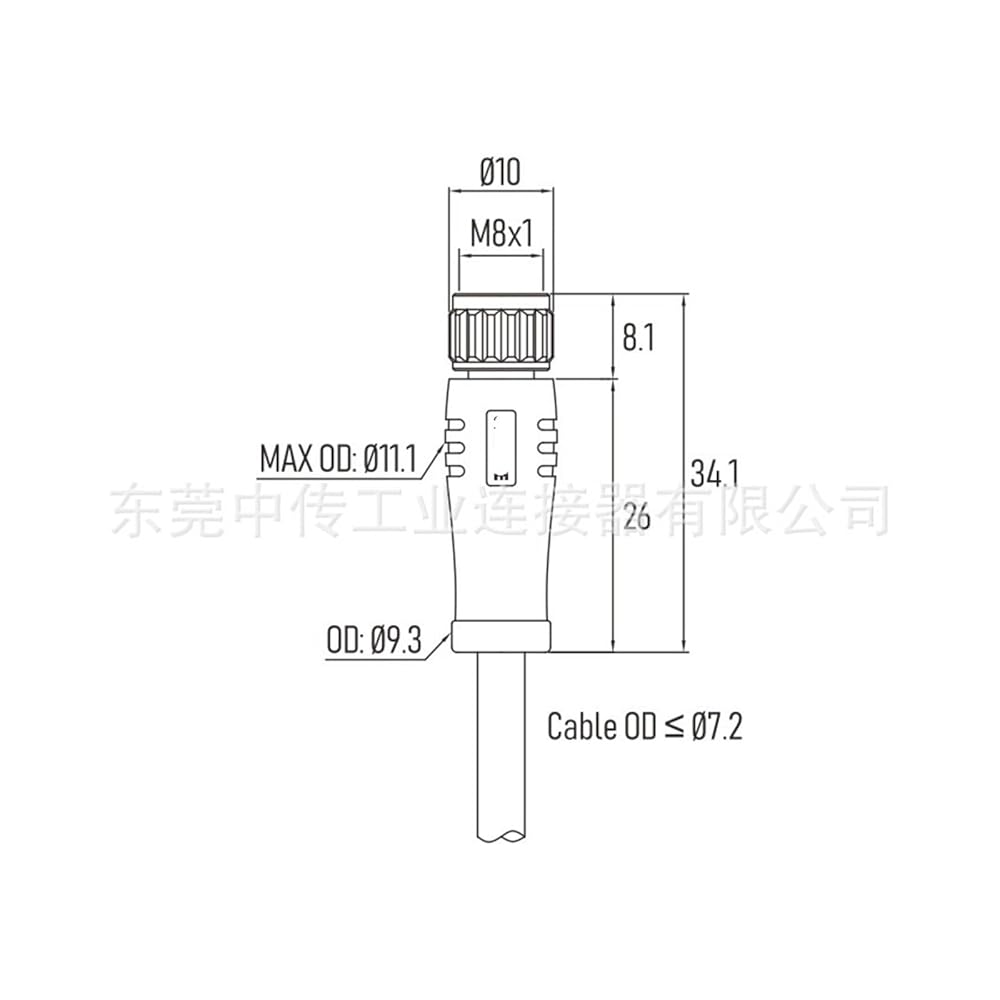 M8 Connector 3pin A-Code Female Straight Head molding precast with Wire Aviation